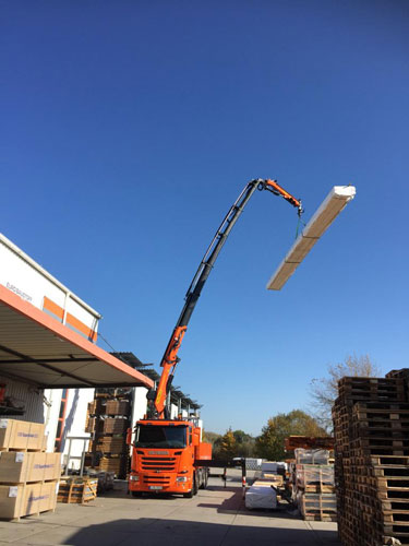 Wir verfügen über einen eigenen Fuhrpark mit schadstoffarmen LKW nach Euro 5 und Euro 6 Norm. Dadurch sind wir in der Lage, Ihnen besten Service sowie kurze und termingerechte Lieferzeiten zu garantieren. Ob Zustellung per Hochkran oder Gabelstapler-Entladung – unsere Fahrer sind jeder Herausforderung gewachsen und unser Fuhrpark meistert auch jede Spezialsituation für Sie mit Bravour.